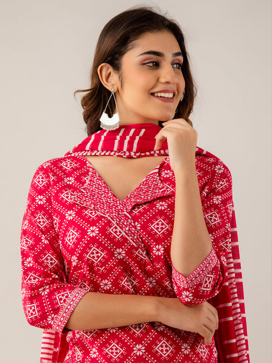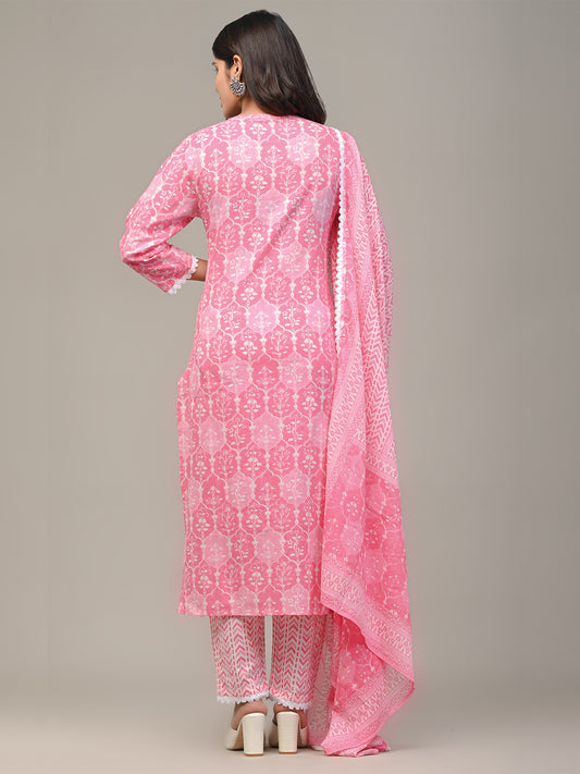 COTTON PRINTED PINK KURTA SET WITH DUPATTA