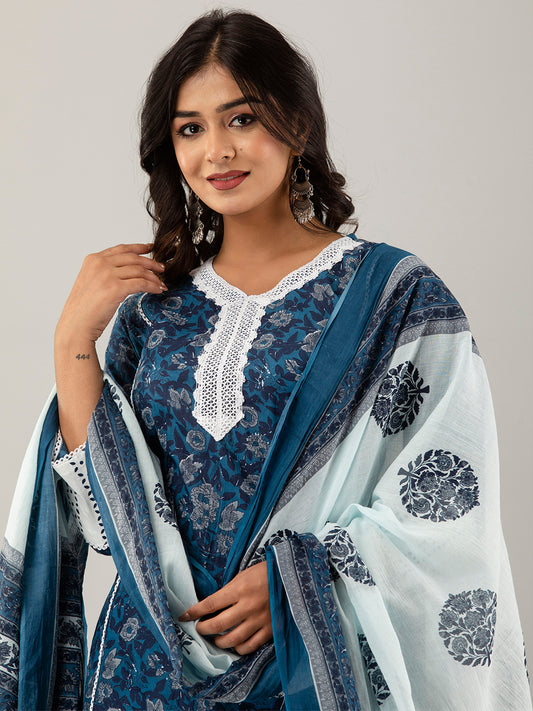 COTTON PRINTED BLACK KURTA SET WITH DUPATTA