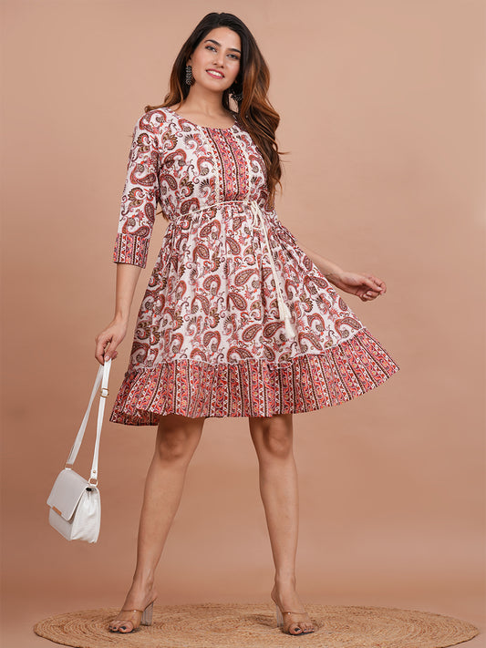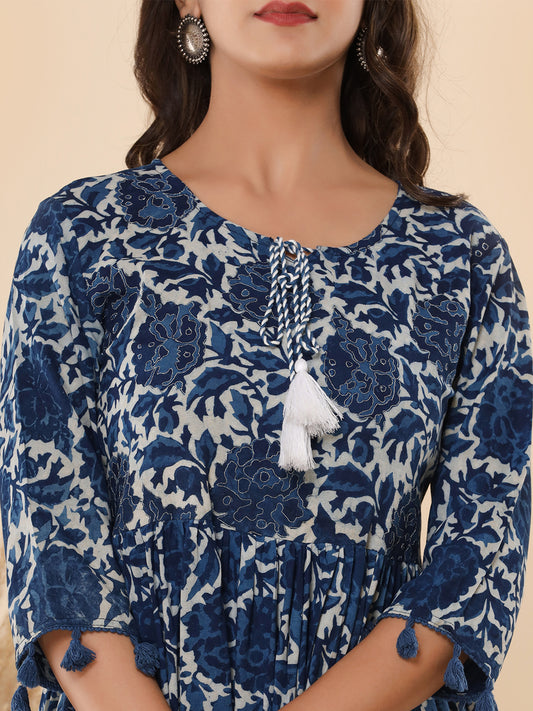 Cotton Printed Navy Blue Ethnic Motifs Dress