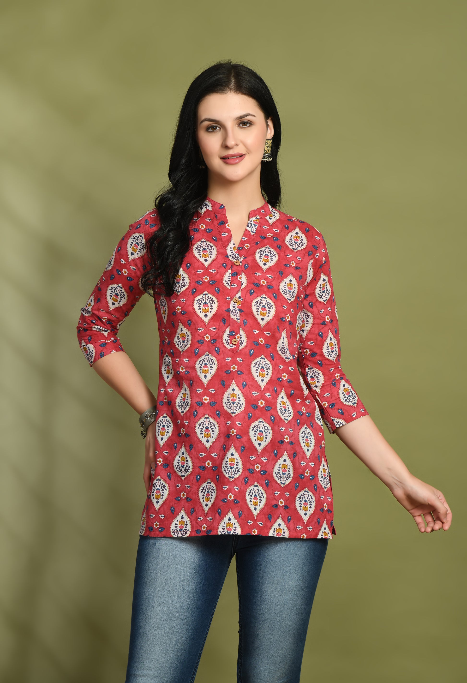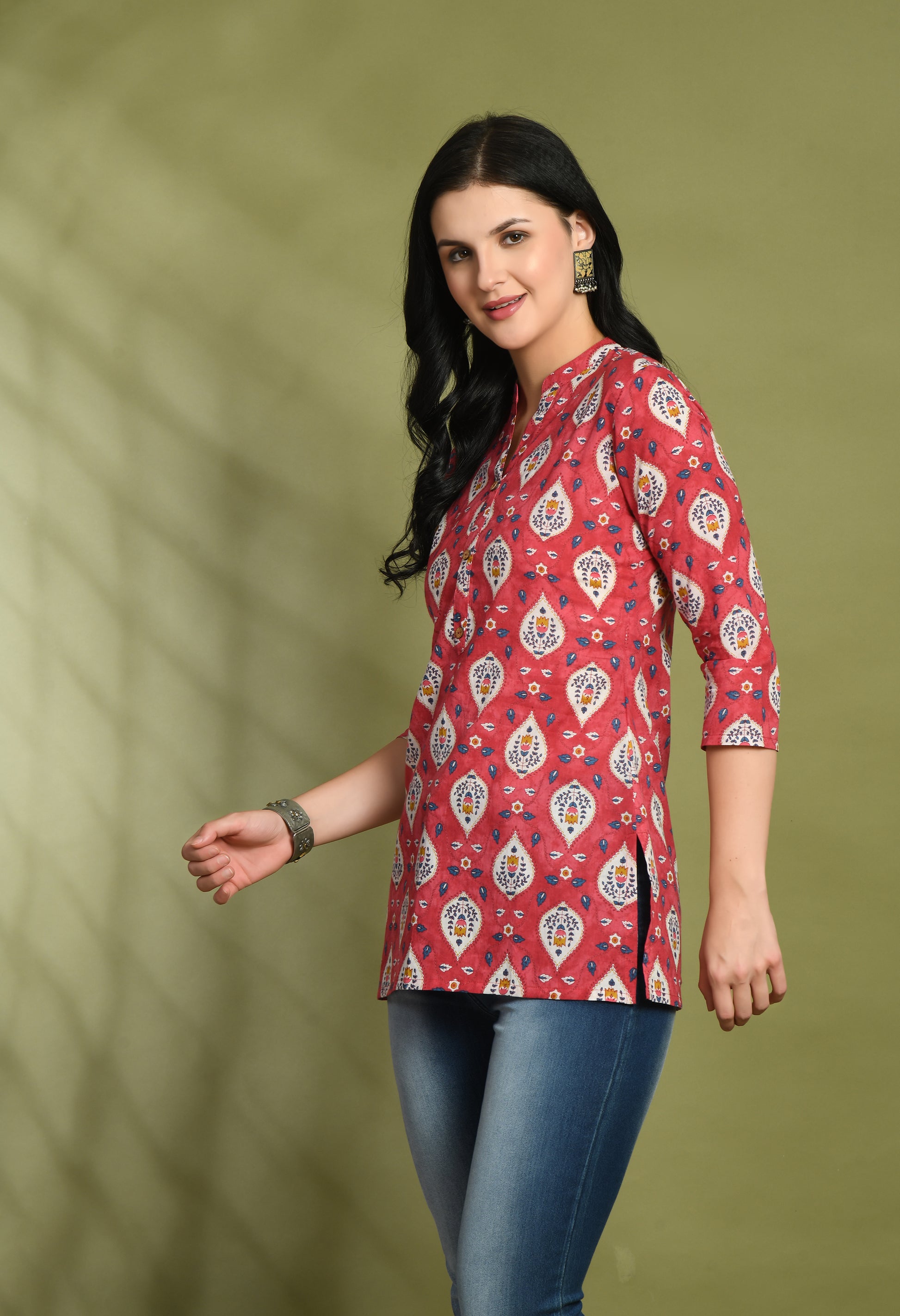 Cotton Printed Rust Brown Angrakha Short Tunic