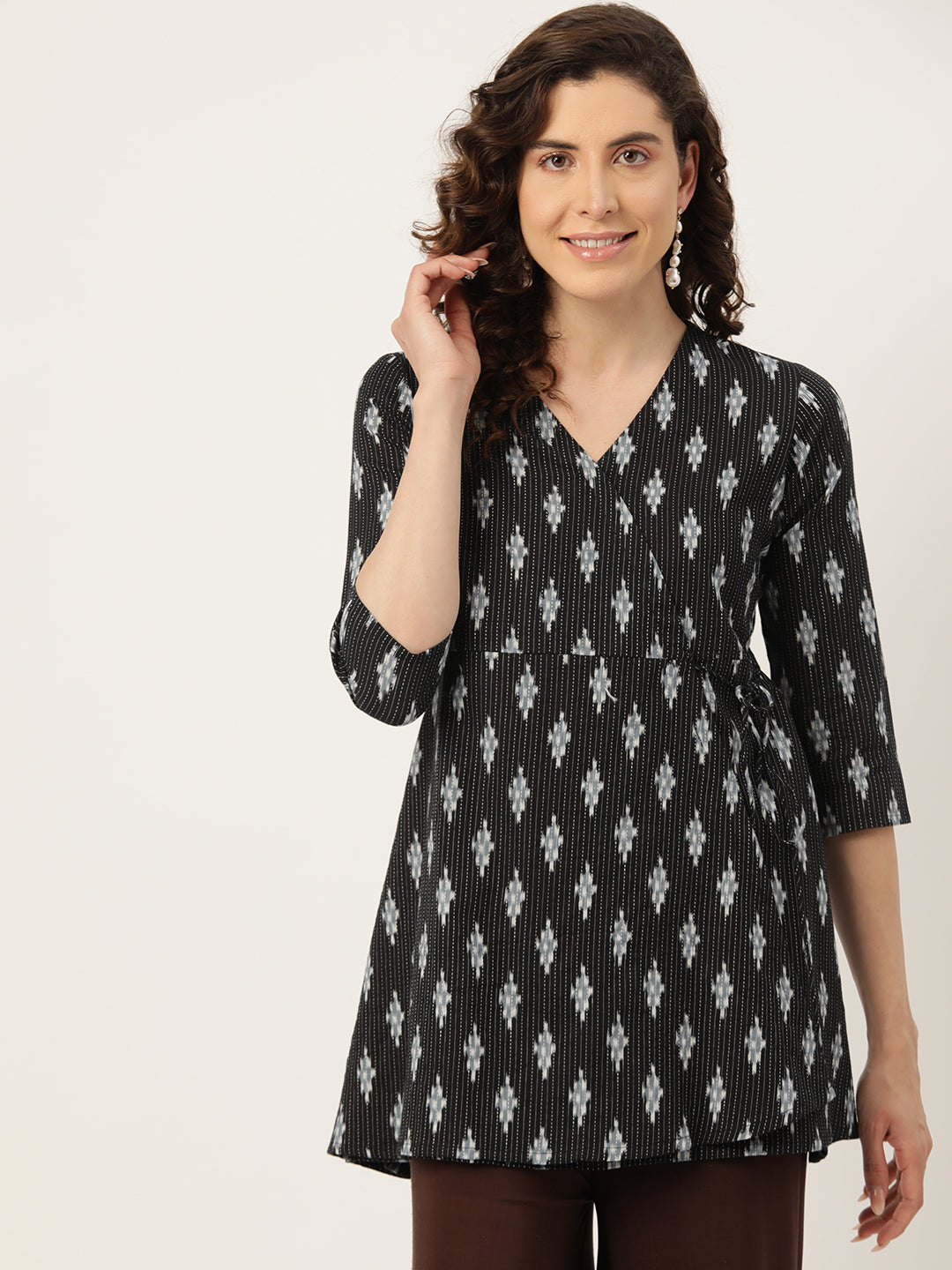 Cotton Printed Rust Brown Angrakha Short Tunic