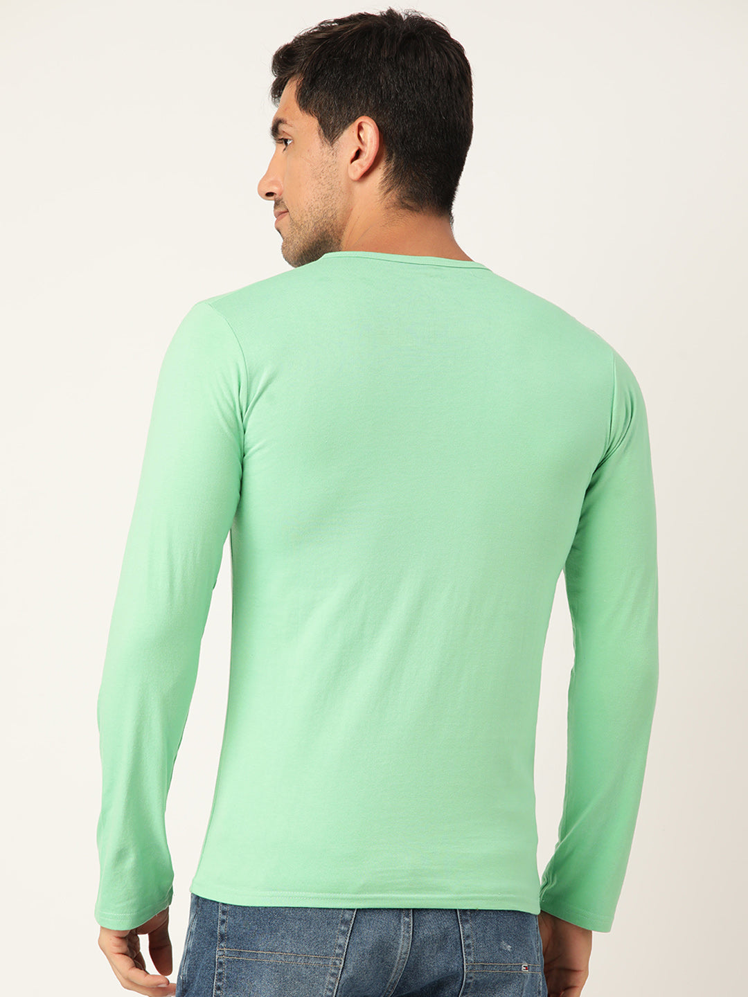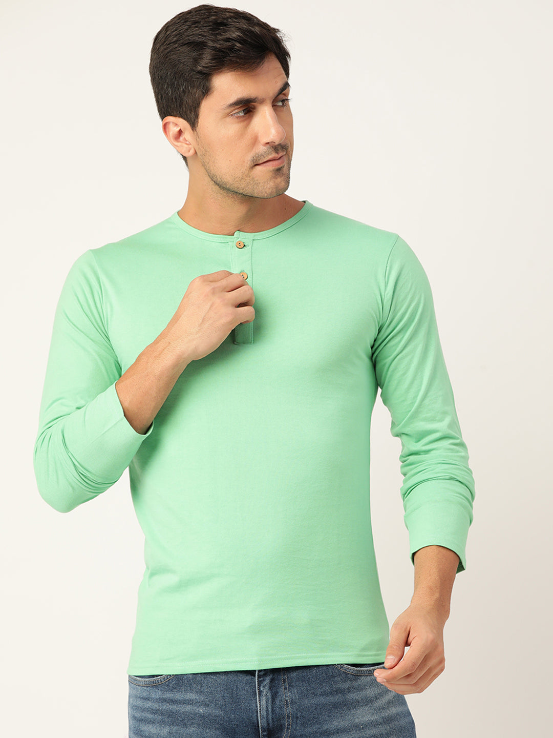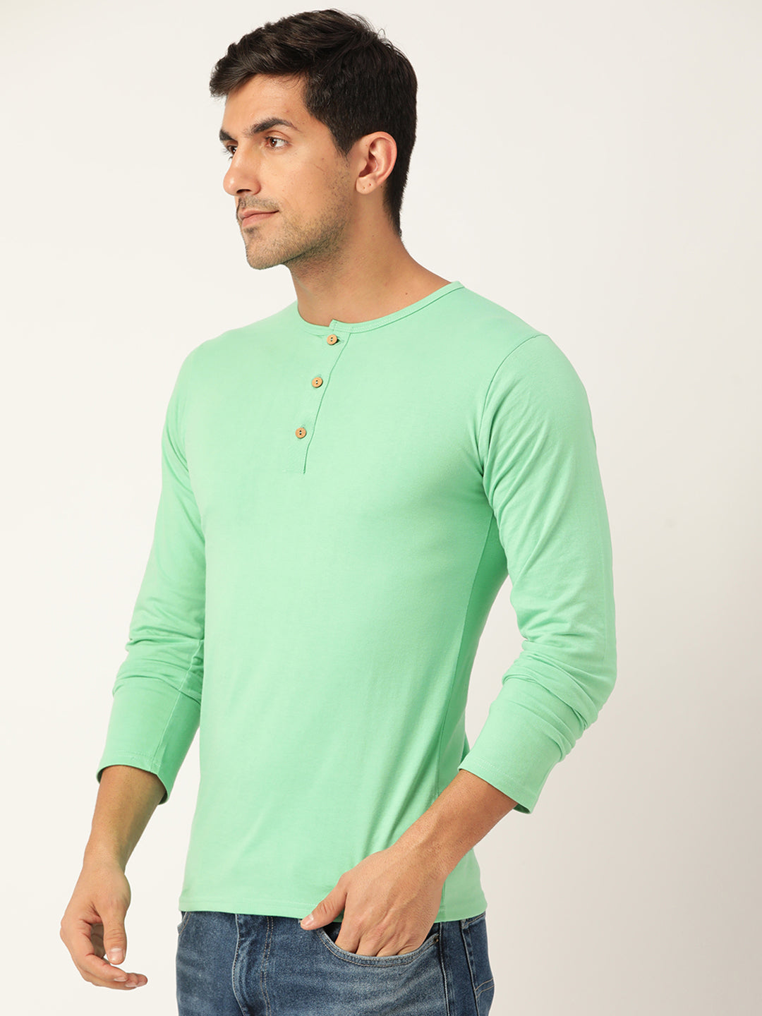 Plain Lime Green Henley Full Sleeves T-Shirt